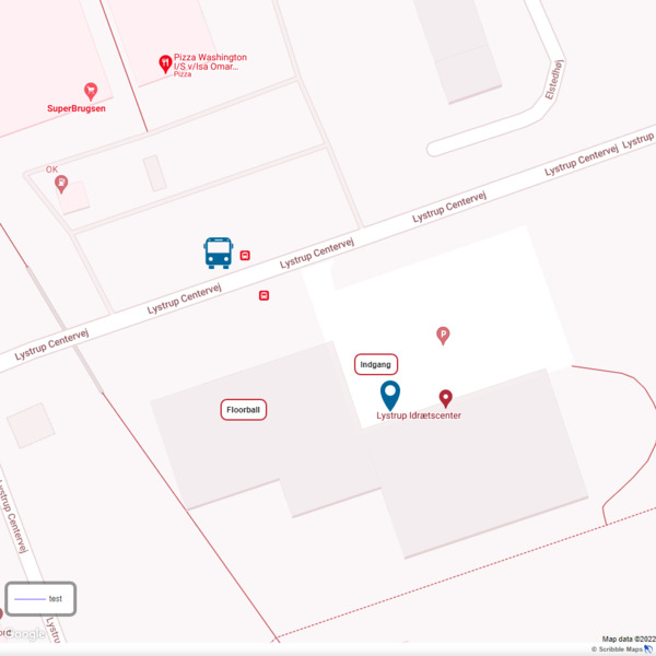 Lystrup Station, hvor Letbane L1 og L2 begge stopper, ligger 800 meter - ca. 11 minutters gang - fra Lystrup Idrætscenter.